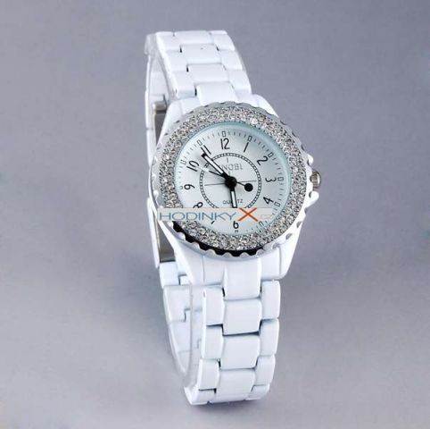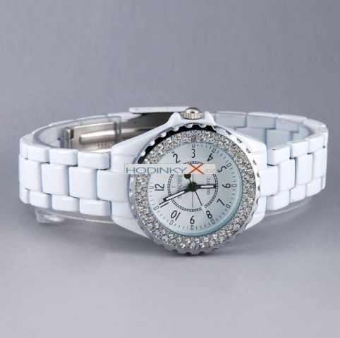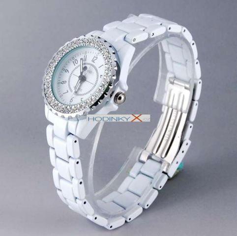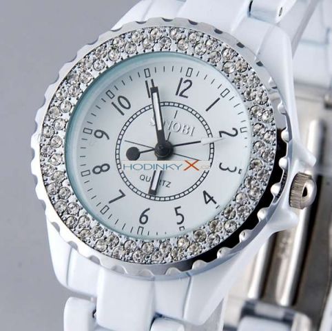 Krásné a luxusní hodinky se zirkony Sinobi ! Ciferník i pásek v krásné bílé barvě.