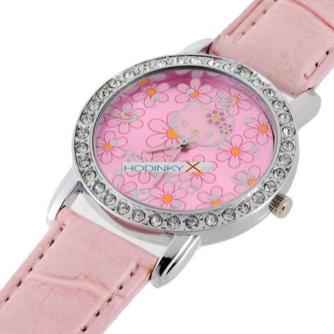 HELLO KITTY hodinky Crystal Flower růžové