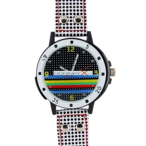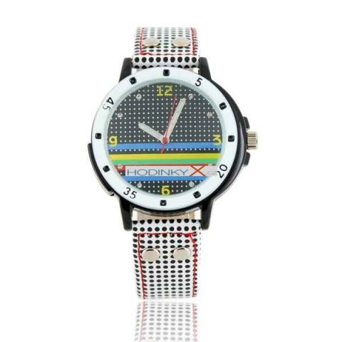 Kulaté hodinky s unikátními černými tečkami vzorkem design.