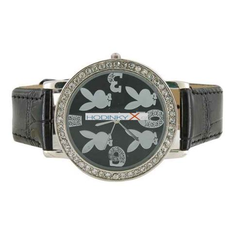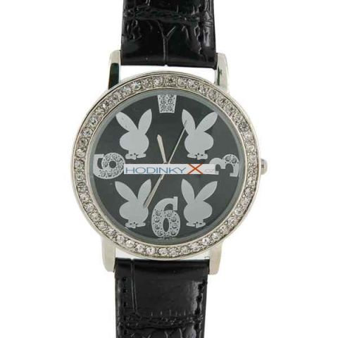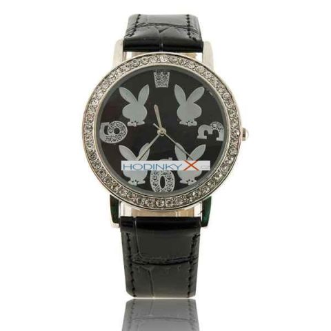 Velmi stylové a levné hodinky Playboy, ciferník krásně osázen krystaly.