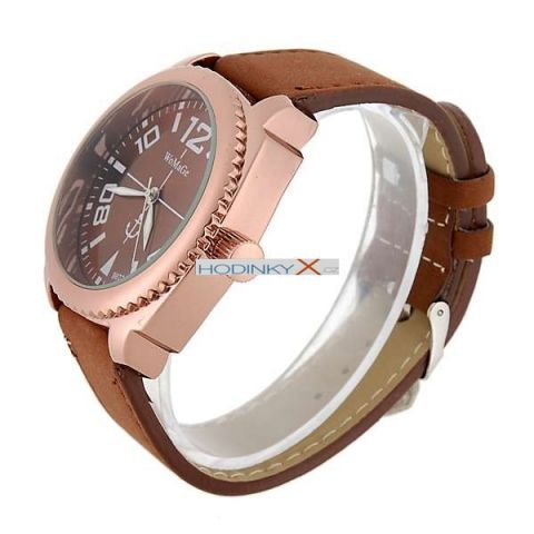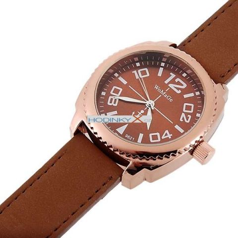 Designově velmi podařené hodinky - pouzdro tvořeno ušlechtilou, netoxickou ocelí měděné barvy.