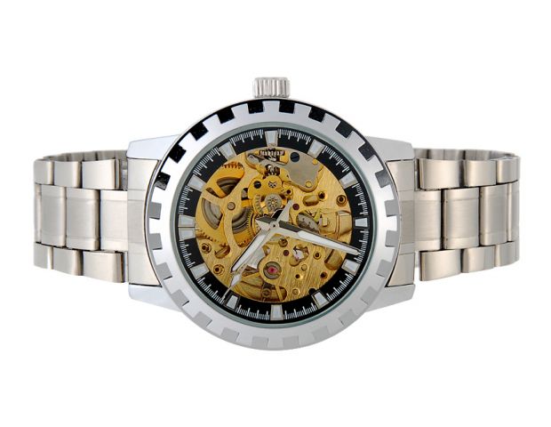 Průhledný ciferník - můžete obdivovat jak precizně a přesně pracuje kvalitní mechanický strojek.