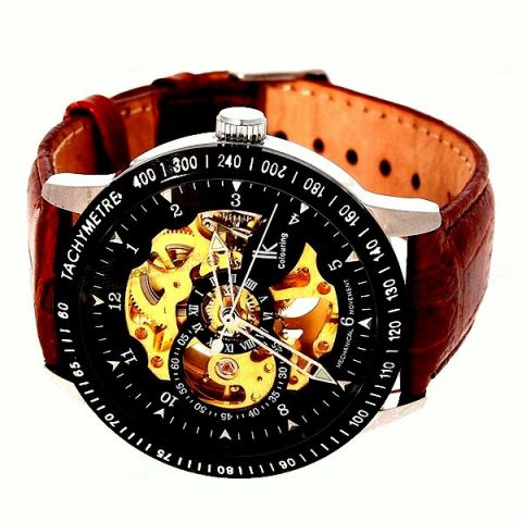 Pánské hodinky Luxury Ik Automatic hnědo-zlaté